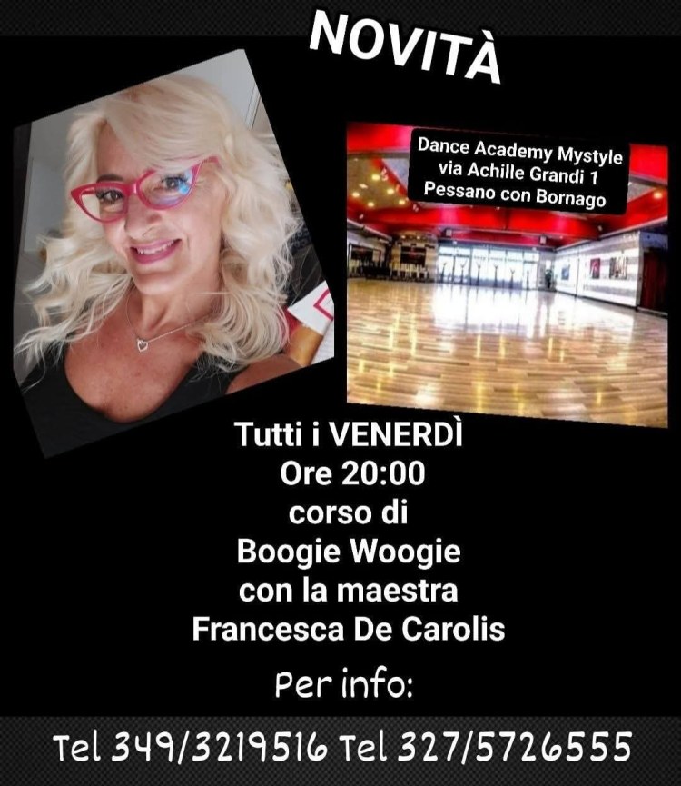 Appuntamento a settembre con la maestra Francesca De Carolis per una prova di ballo Boogie Woogie da venerdì 19 SETTEMBRE 2025 al Dance Academy Mystyle